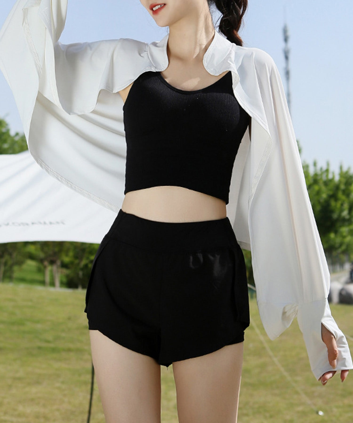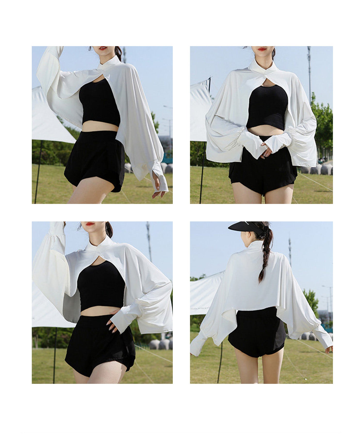袖口には指穴を施し、動いてもずれにくい仕様に。手元までしっかり紫外線対策ができます。