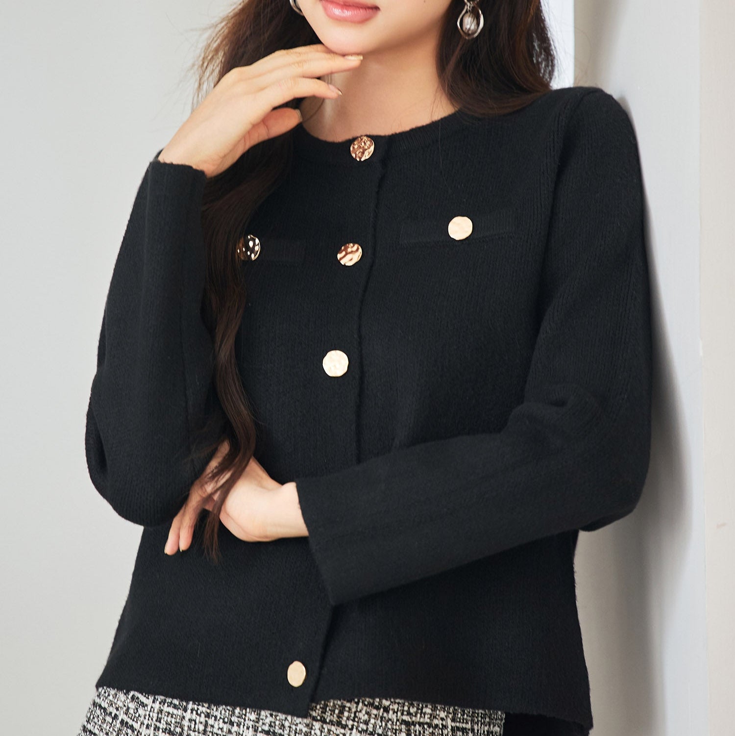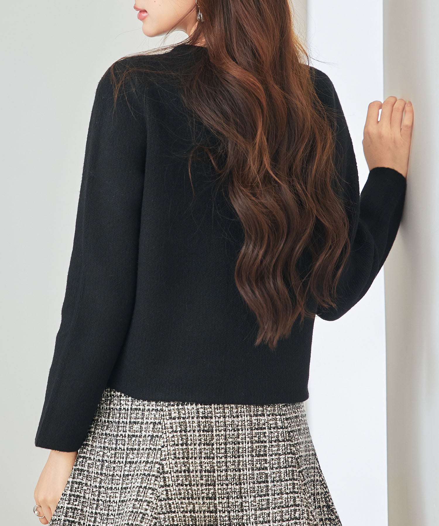 ノーカラーショート丈ニットカーディガンsdp8092 ブラック