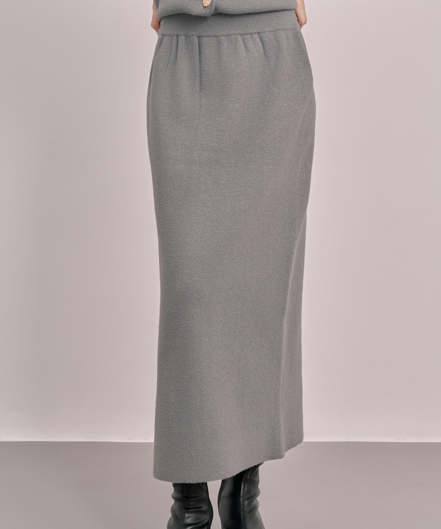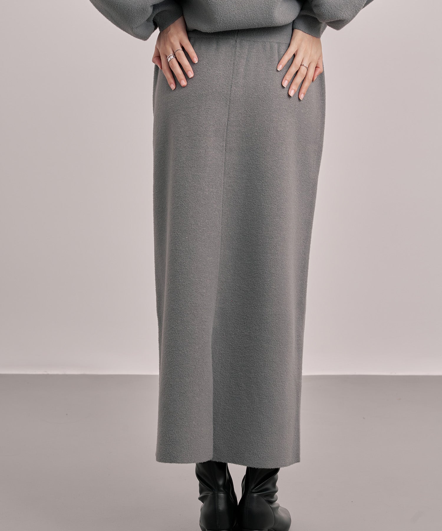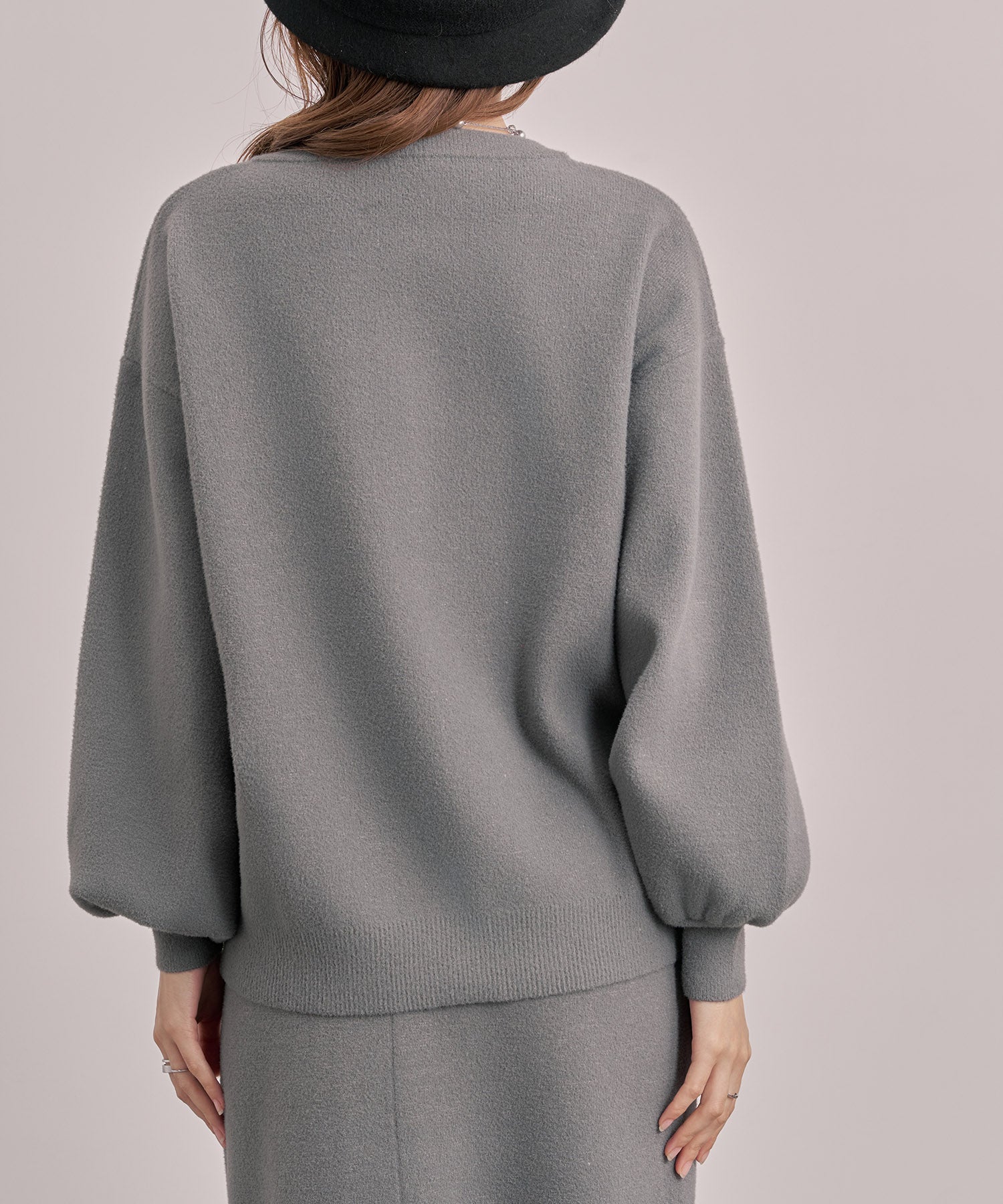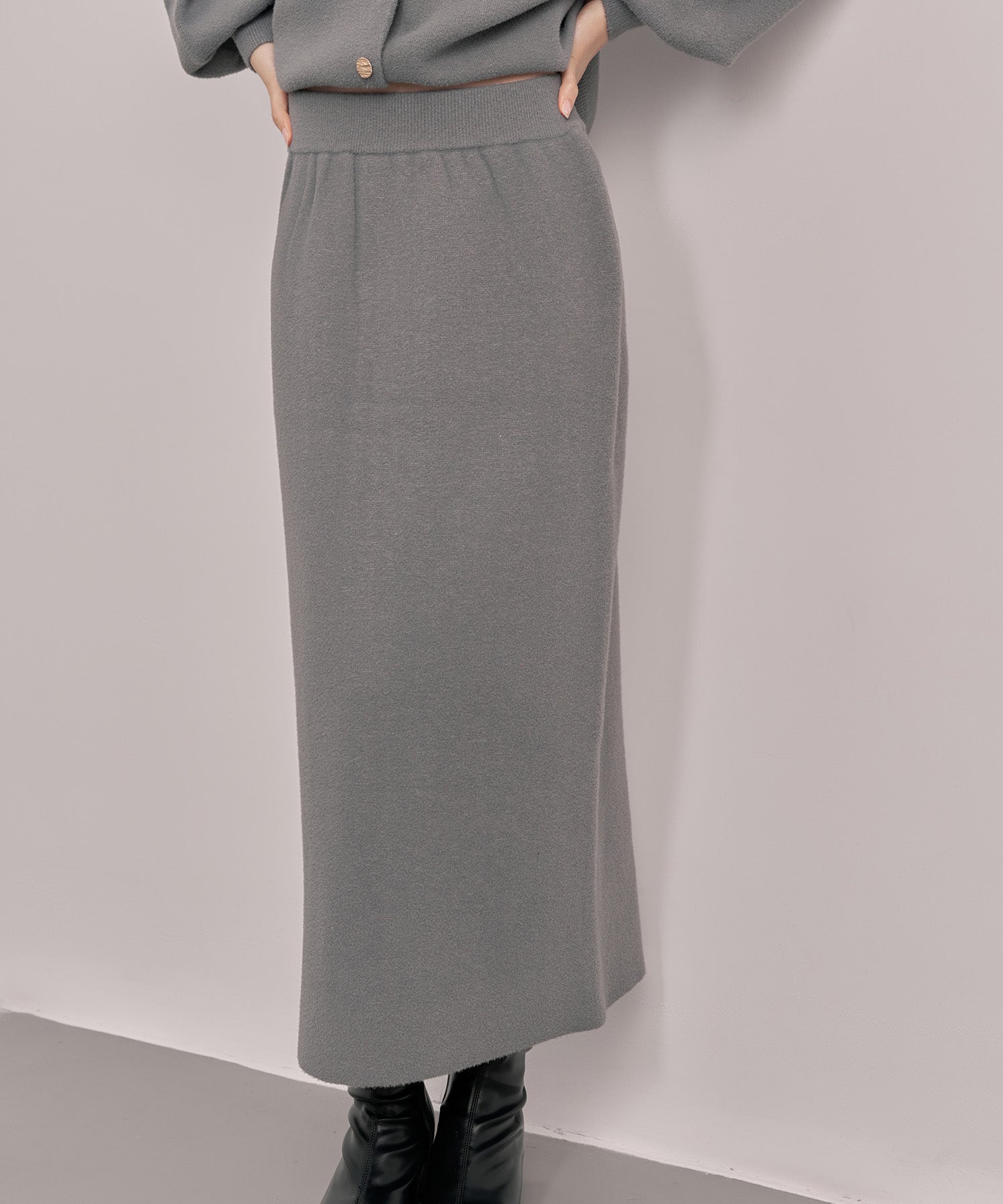カーディガンとスカートで単品使いができる万能卯セットアップ。どちらもシンプルニットなので手持ちのアイテムと着回し抜群です。