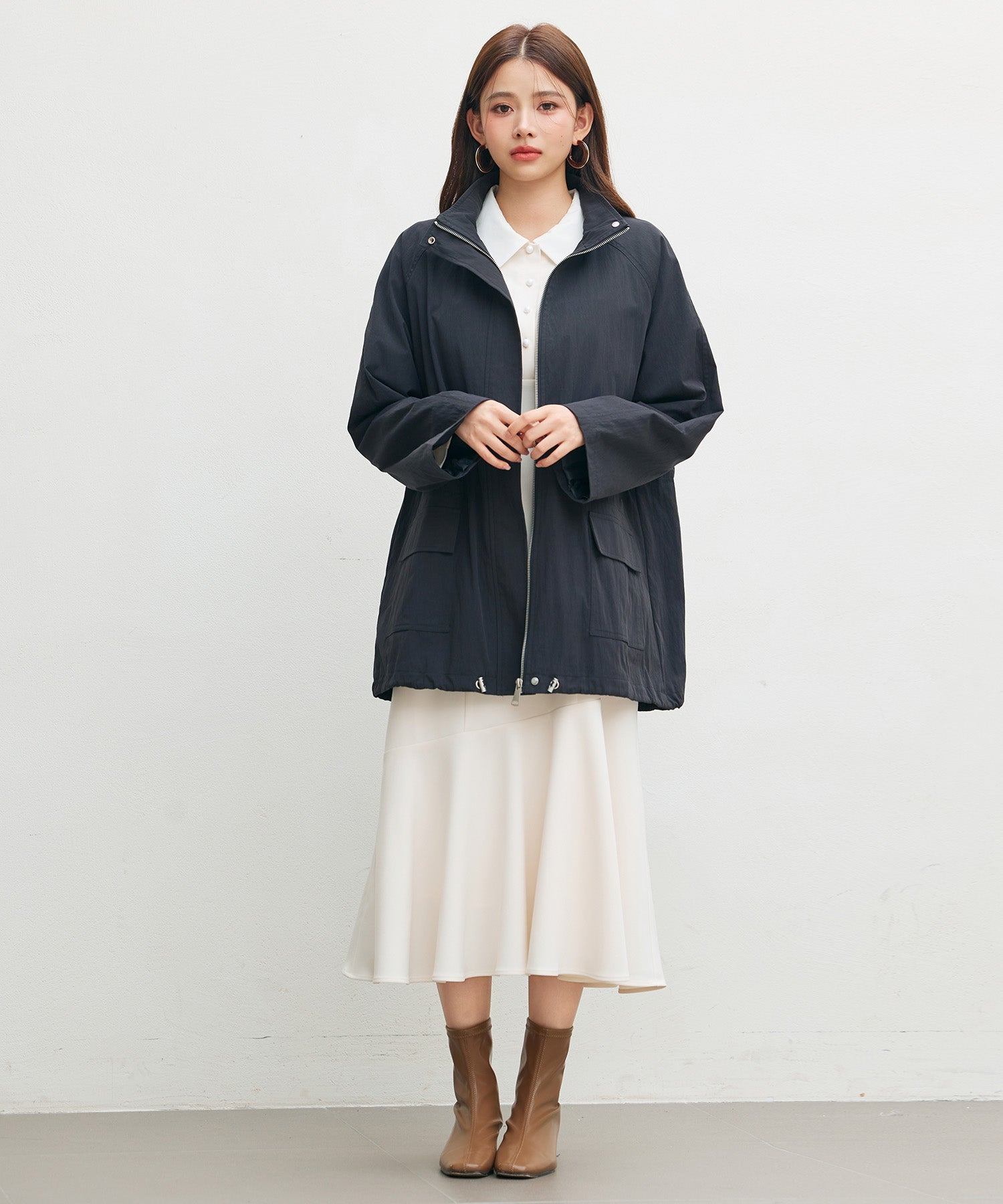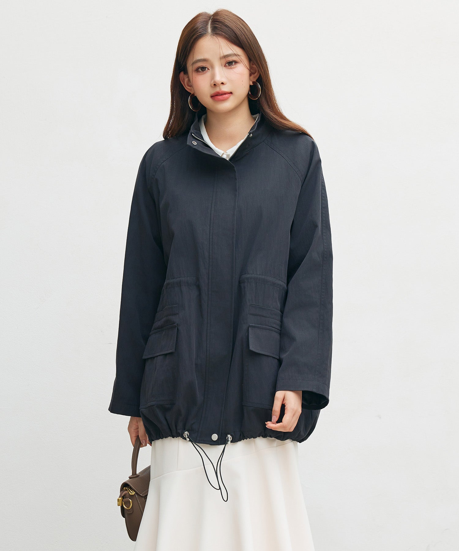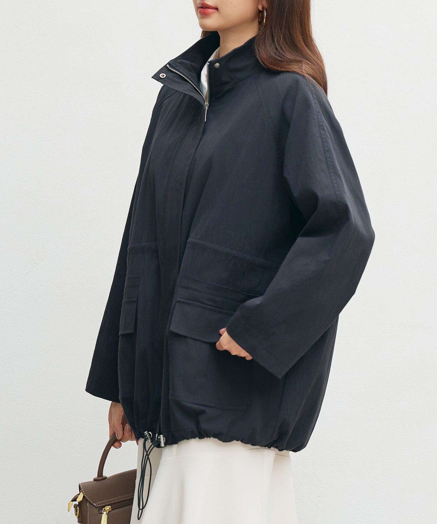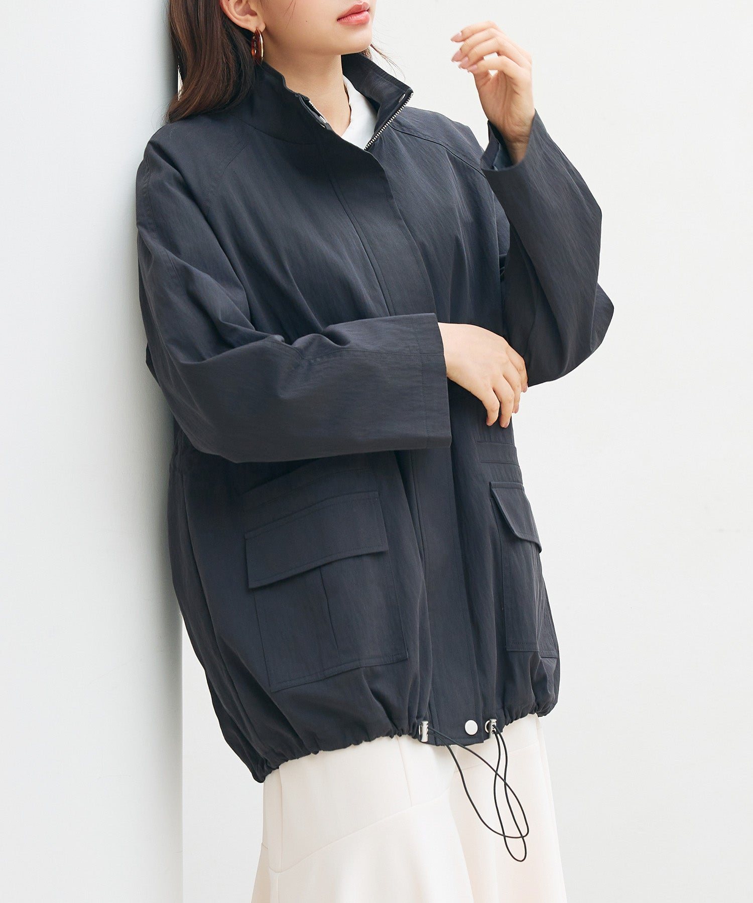 裾とウエストのドロスト紐でシルエット変えが可能。メンズライクなストレートシルエだけでなく、裾を絞って膨らみをだしたり、ウエストを絞ってメリハリを出した着こなしもOK!