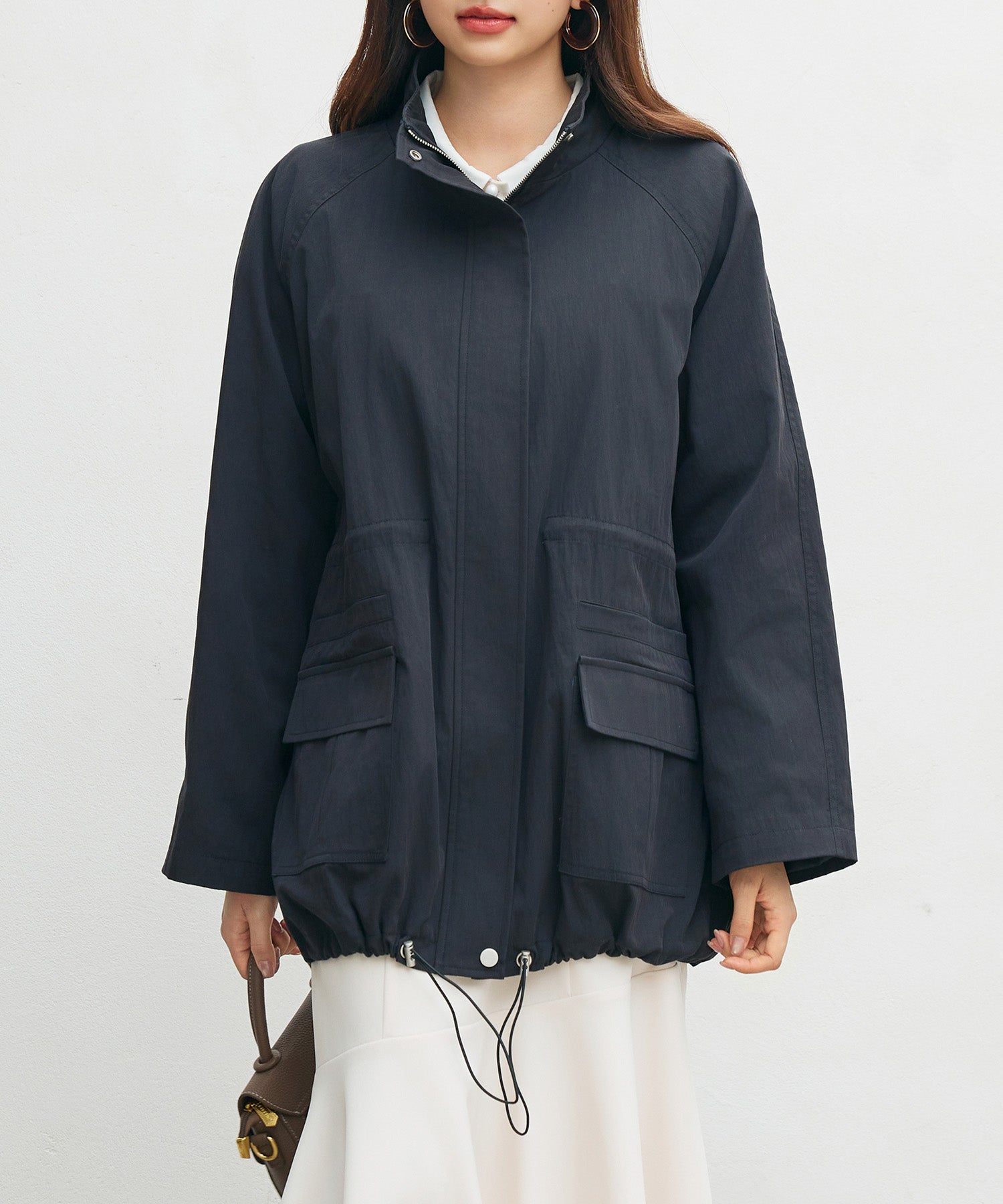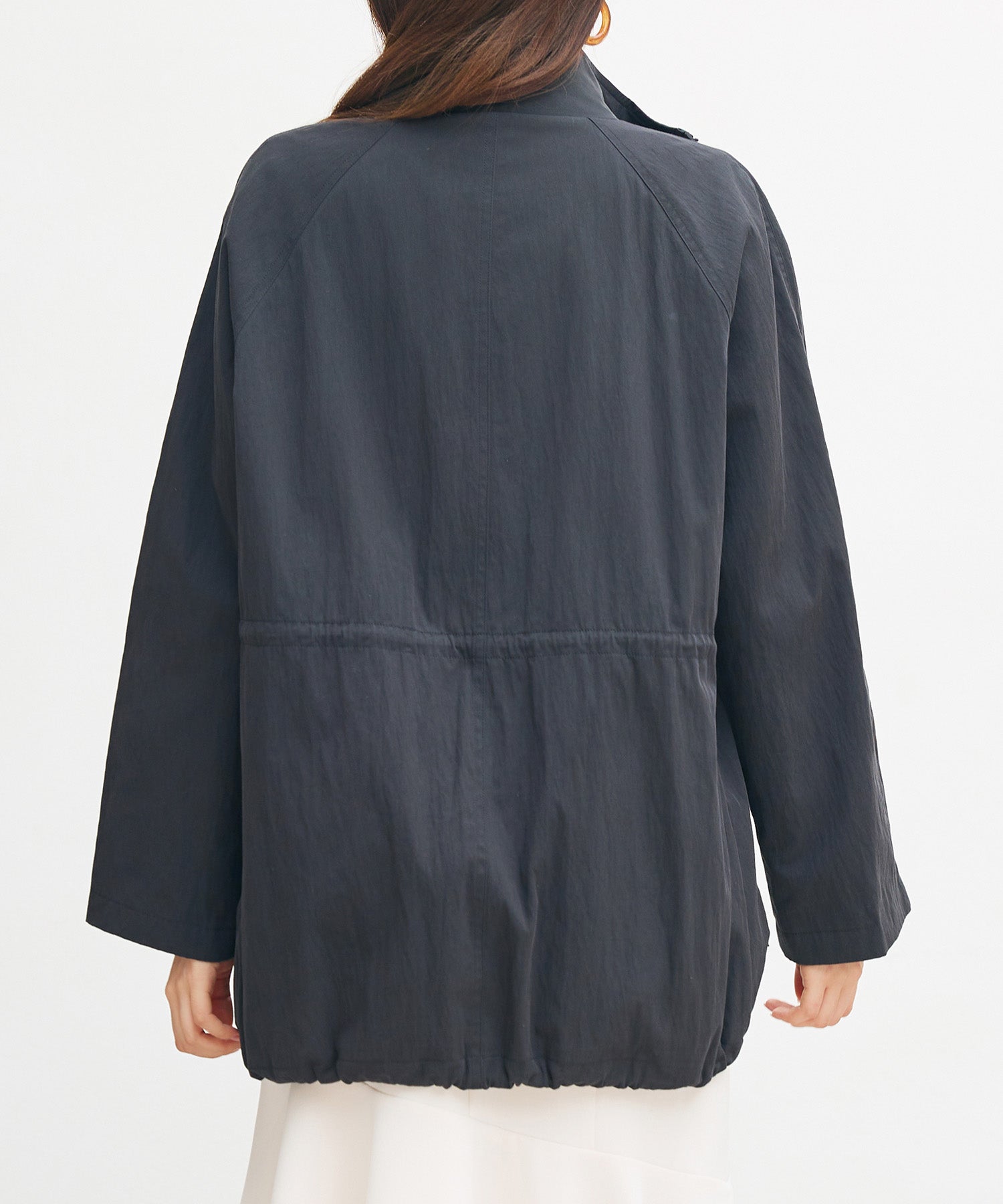 ファスナーやドロストのストッパー、スナップボタンなど、金属の付属部品は全て品よく馴染み良いシルバーカラーです。