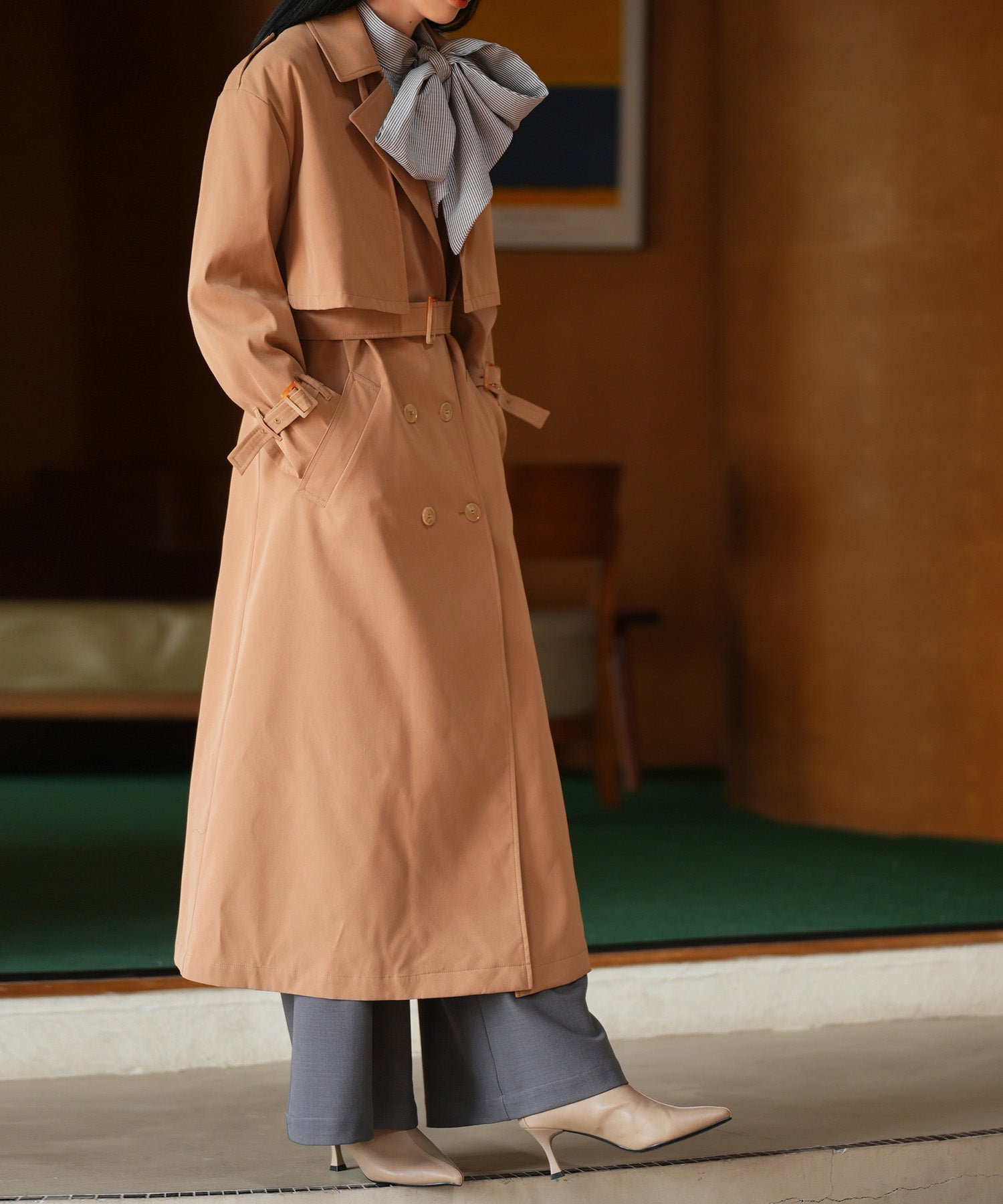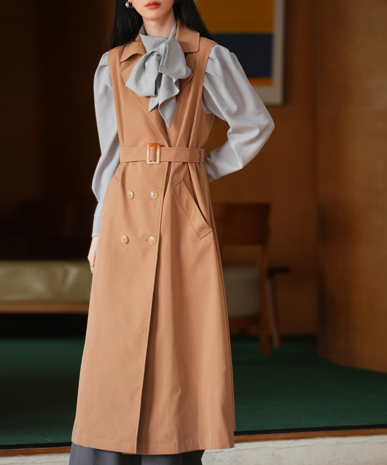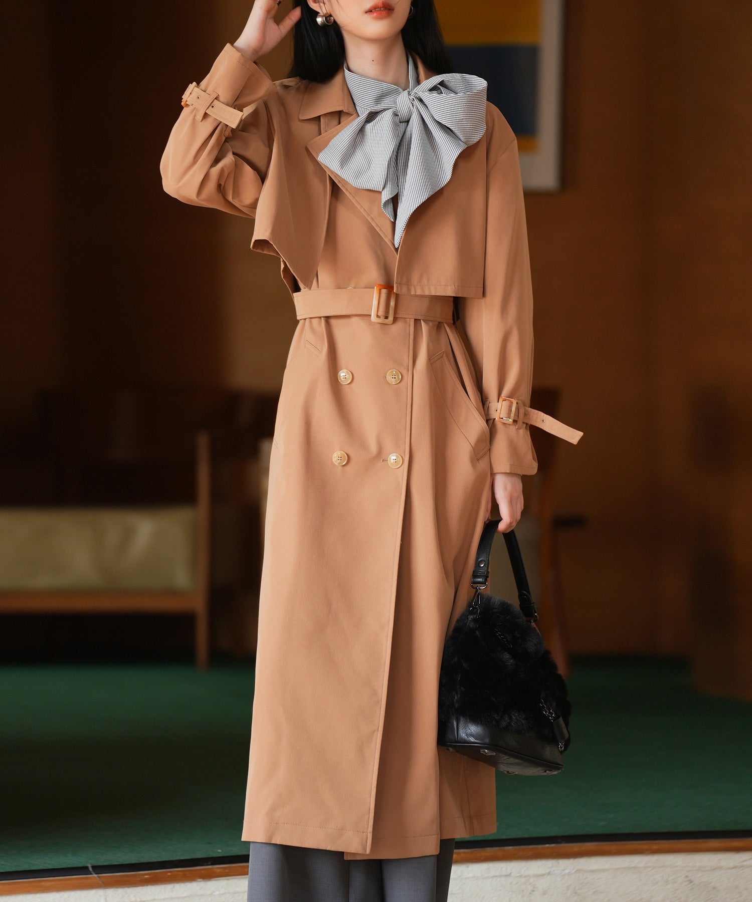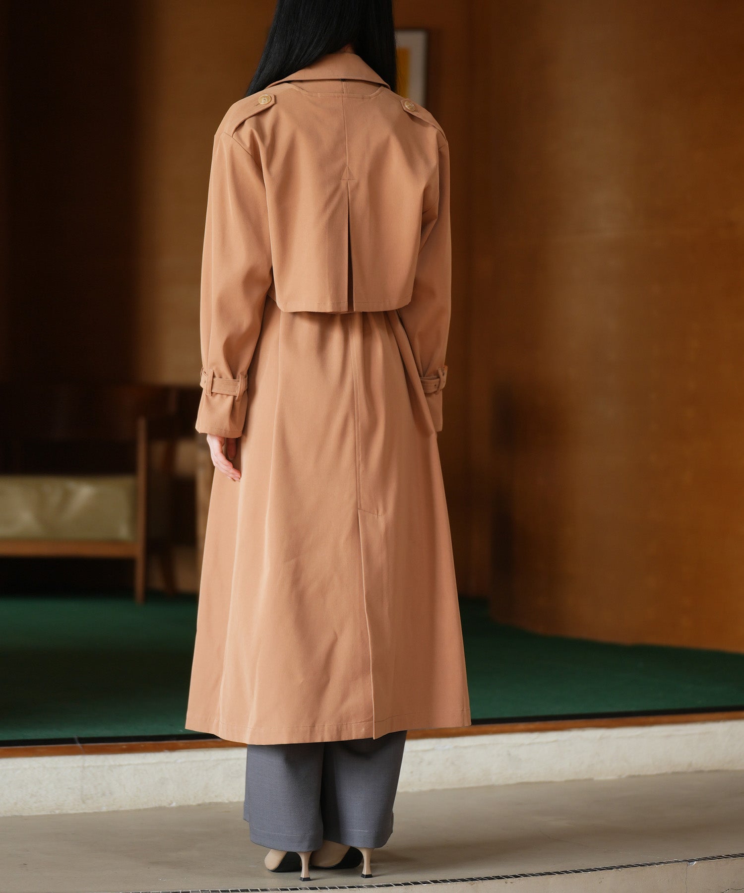 ショート丈ジャケットやベストでも着用可能な大人きれいな2点セットトレンチコートです。