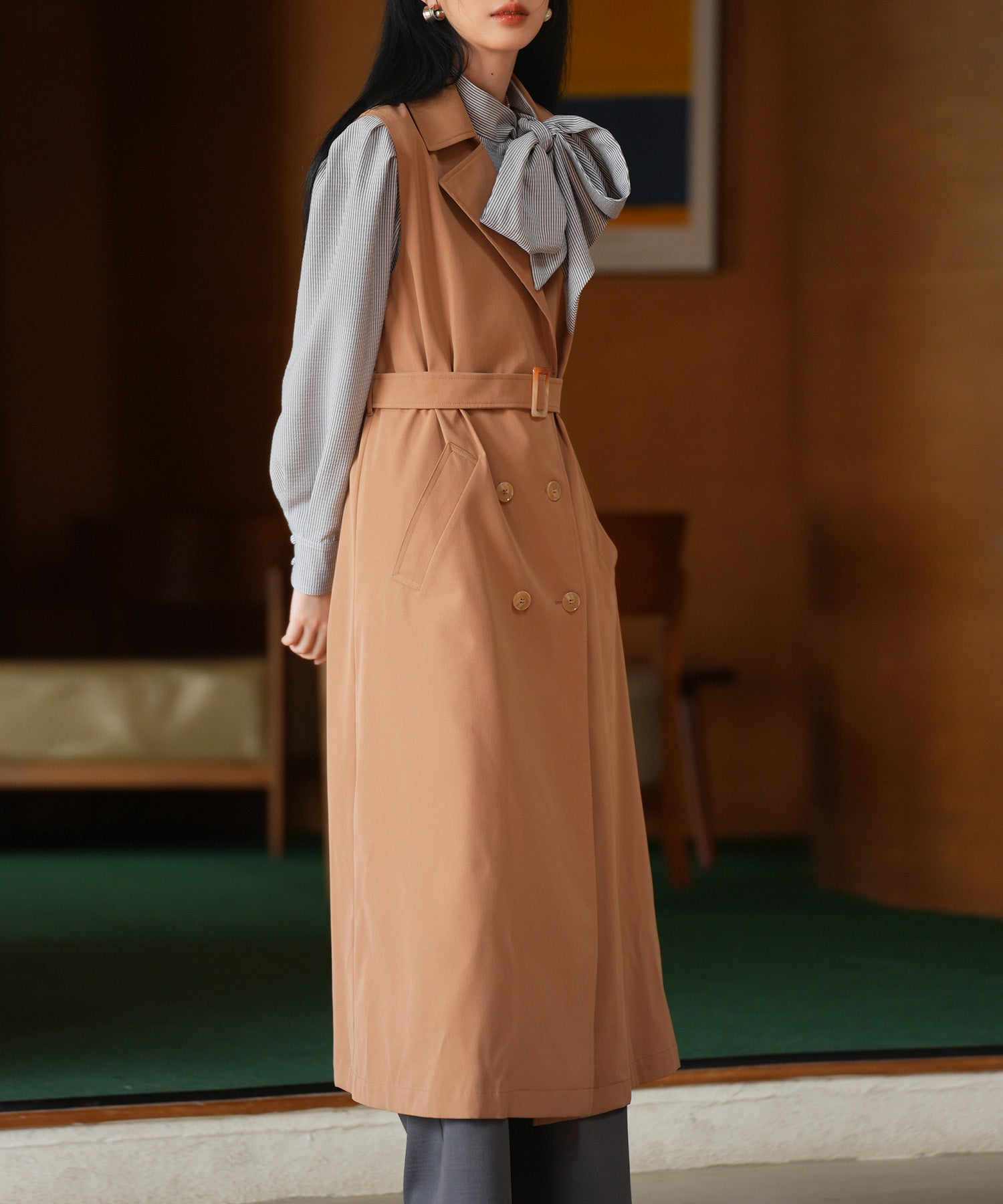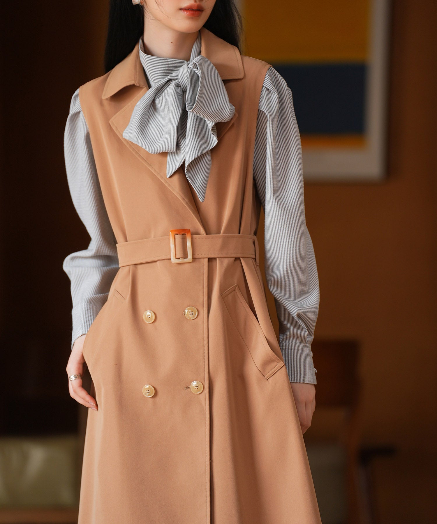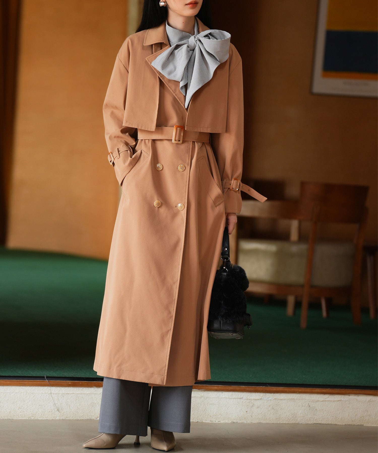 ショート丈ジャケットやベストでも着用可能な大人きれいな2点セットトレンチコートです。