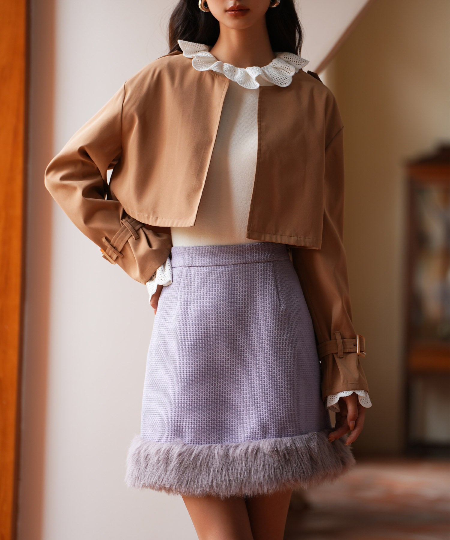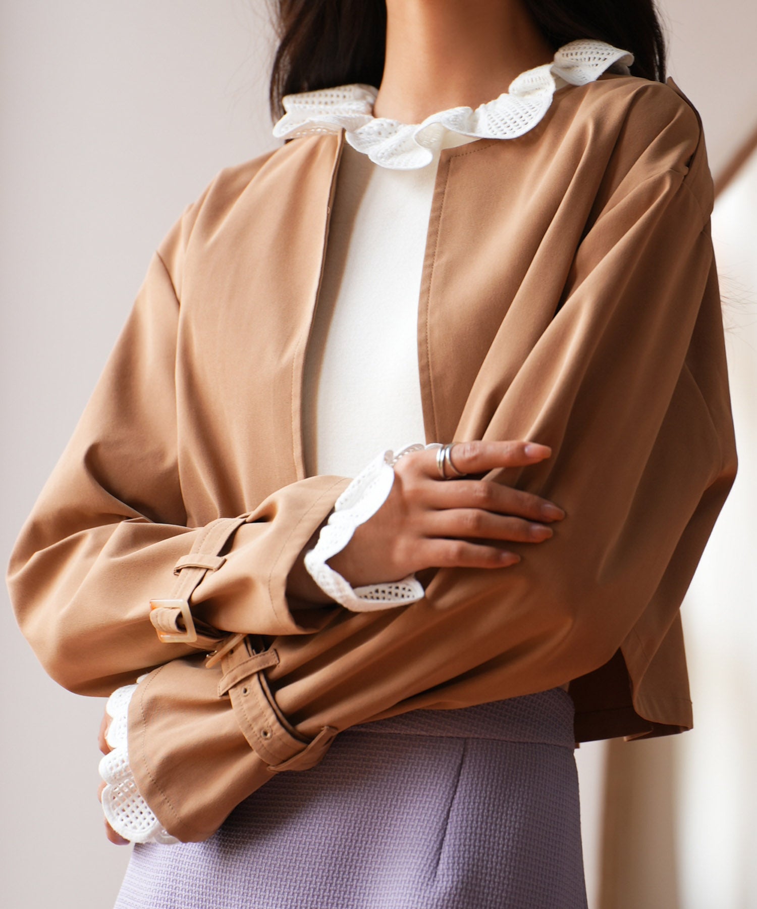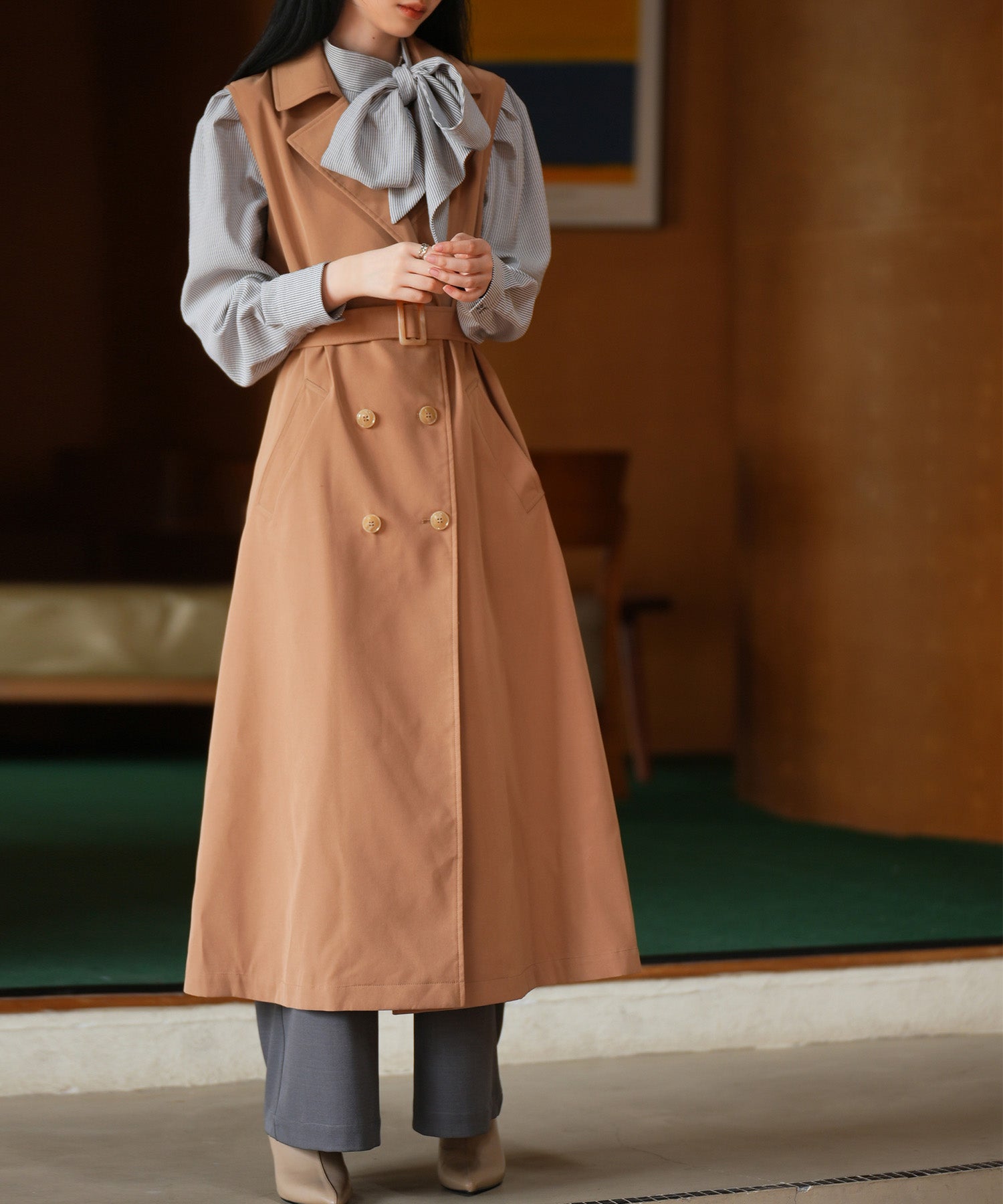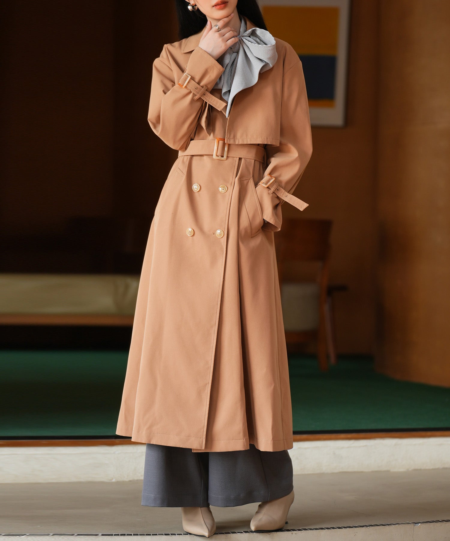 ショート丈ジャケットやベストでも着用可能な大人きれいな2点セットトレンチコートです。